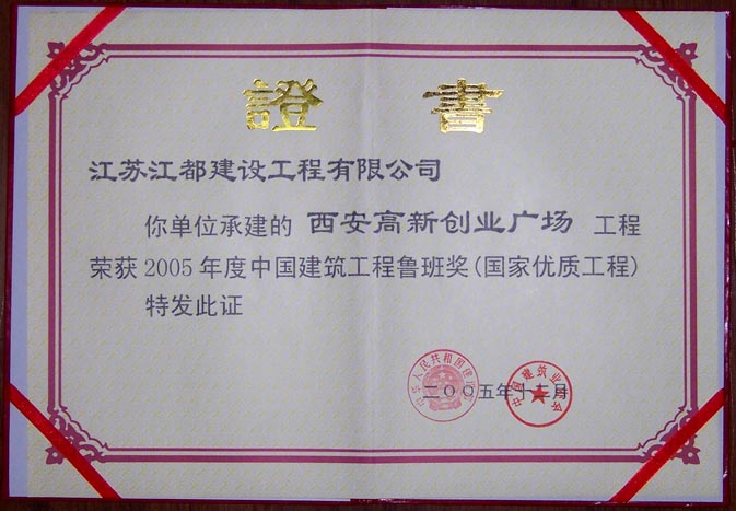 工程获奖证书
