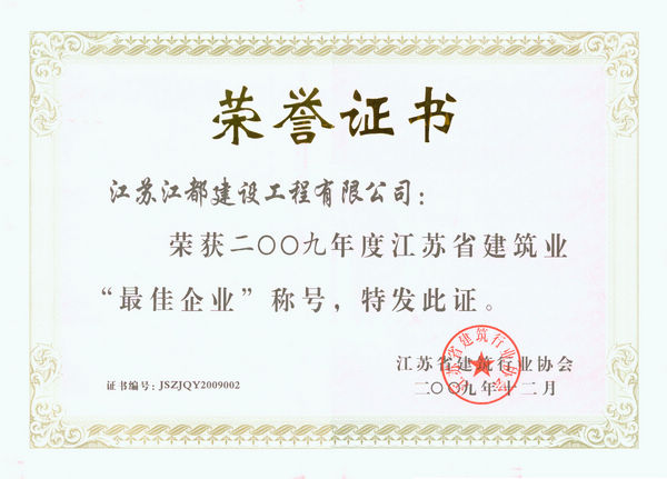 2009年度江苏省建筑业最佳企业