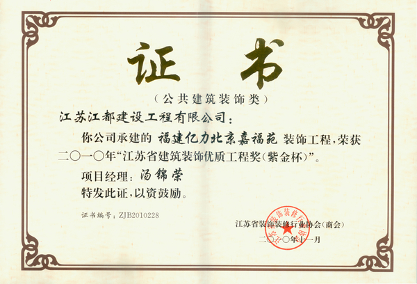 福建亿力北京嘉福苑(江苏省建筑装饰紫金杯)