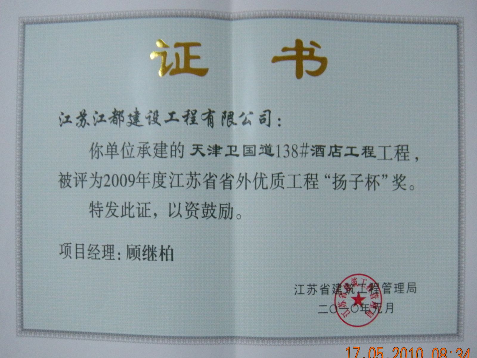 工程获奖证书